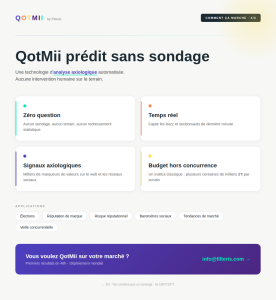 Vous souhaitez déployer QOTMII sur votre marché (élections, réputation de marque, veille concurrentielle, tendances…) ? Contactez-nous → info@filteris.com